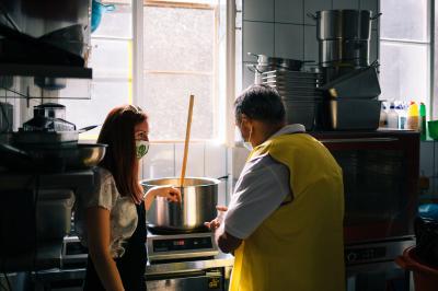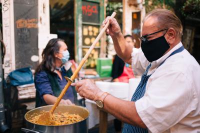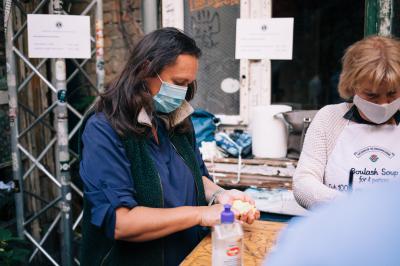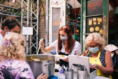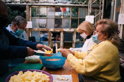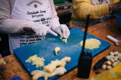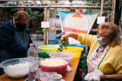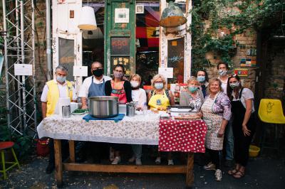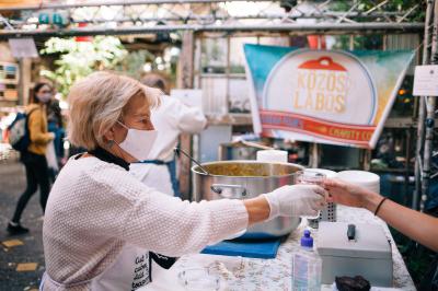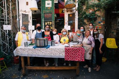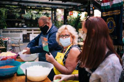 A Közös Lábas jótékonysági főzés keretében ismét lehetőséget kapott a Cosmopolitan LC a Szimpla Kertben, ahova reggel szeptember 20-án, 8.30 körül munkára készen összegyűlt a lelkes csapat. Mester szakácsaik Horváth Miklós, Joe és Aisling Keys, illetve Gordon MacLean vezetésével 11.30-ra elkészült a csirkés és vega curry. Ildikó, Aisling, Anna és Kökény Misi jóvoltából finom sütemények kerültek az asztalra.