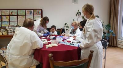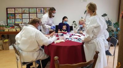 A lelkes orvoscsapatot ezúttal dr. Vajda Noémi fogorvos, Horváth Miklós belgyógyász, a szemészeti és diabétesz vizsgálatokért felelős Gruber Rita, továbbá Horváth Hanna fogászati asszisztens és Németh Anna általános asszisztens alkotta. Óriási köszönet dr. Liszovszky Ágnes zónaelnöknek, programfelelősnek, aki előzetesen felmérte, hogy mekkora szükség van az anyaotthonok lakóinak szűrésére. Összesen 90 otthont fognak szűrni, minden otthon esetében 3 szemüveget biztosítanak díjmentesen.