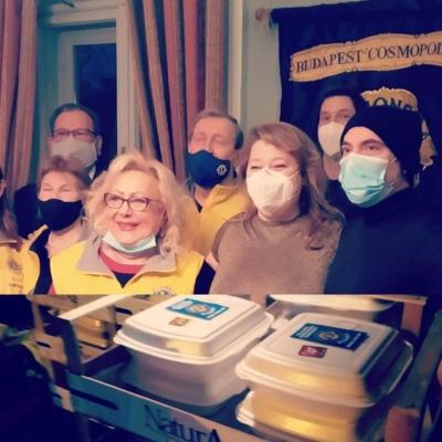 A Budapest Cosmopolitan Lions Club 2020. december 26-án, a 1067 Budapest, Podmaniczky u. 33. szám alatt található Női Éjjeli Menedékhelyen lepett meg 41 asszonyt (18-tól 83 éves korig) 50 adag finom karácsonyi vacsorával.
